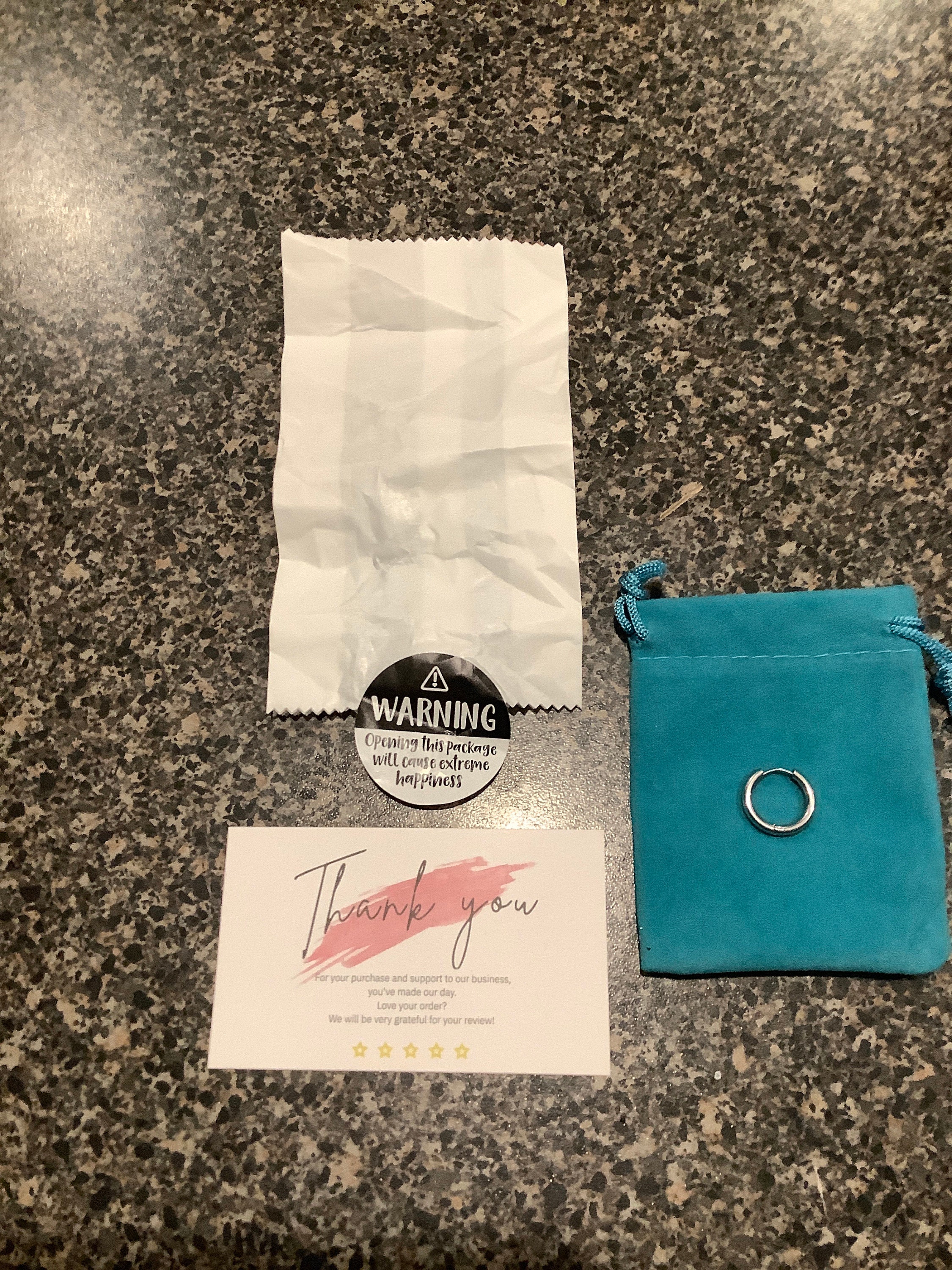 AshnaEverything is very well put together with my purchase (2 blue hoop earrings- 12mm each), from the packaging, to the kind message... Read MoreEverything is very well put together with my purchase (2 blue hoop earrings- 12mm each), from the packaging, to the kind message inside, to the earrings itself. I am also satisfied with my interaction with the owner Vanessa :) HidePosted on -